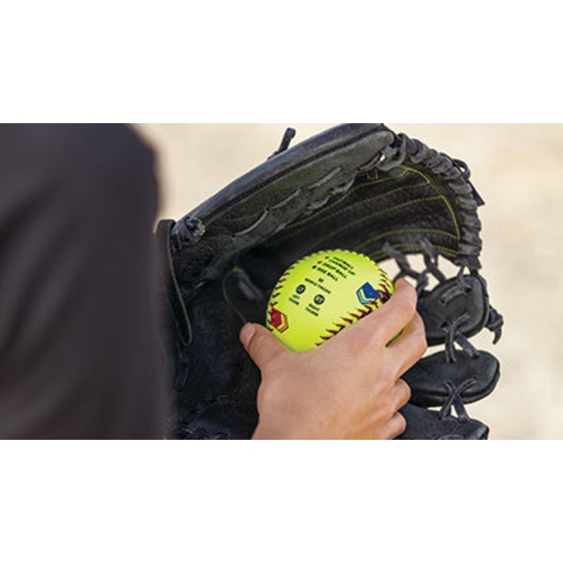 Young pitchers often struggle with the finger placement thats crucial in throwing fastballs, change ups, and drop balls. The Pitch Training Softball teaches right- and left-handed pitchers the proper finger placement with a color-coded pitching key and finger markers printed on the ball. Quickly learn or coach the proper grip for throwing fastballs, change ups, drop balls, and rise balls. Unlike some other training softballs, the Pitch Training Softball is the official weight and size of game balls allowing players to train accurately and develop the muscle memory needed to master the pitches more likely to strike batters out. Recommended for youth softball athletes, the Pitch Training Softball is the easiest way to create added confidence in players fastballs, change ups and drop balls. Help young players build the confidence they need on the mound to face-off against the best hitters in their league.