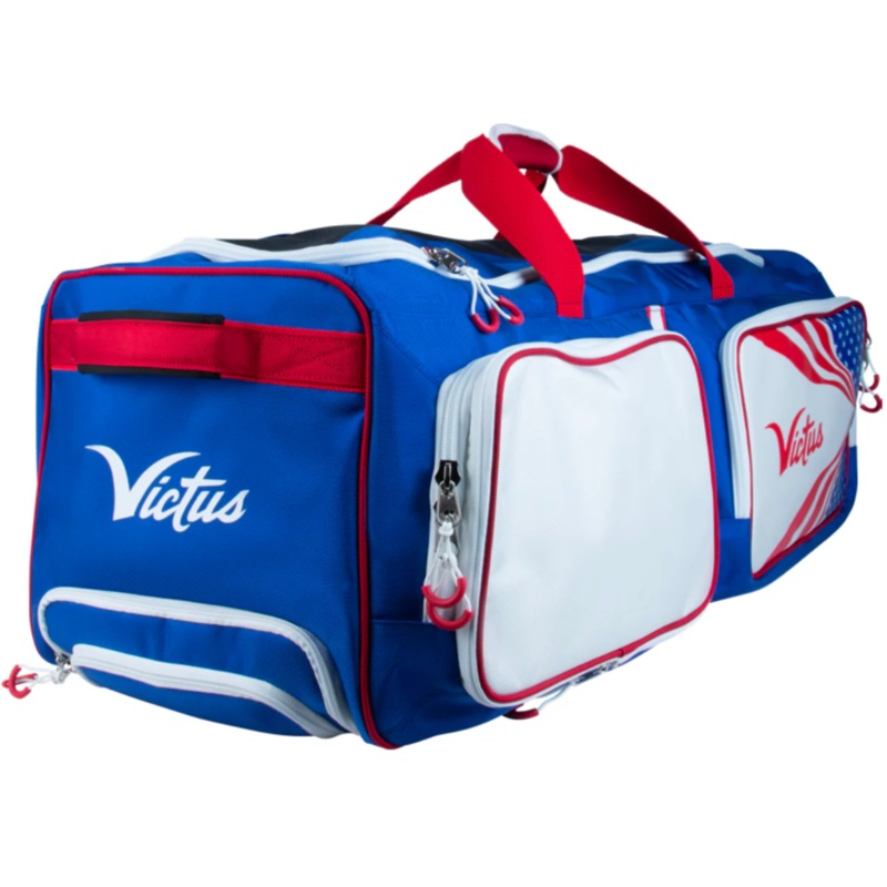 Built with a large rolling frame, smooth wheels, and tough construction, this bag makes it easy to haul all your gear while showing off the red, white, and blue.