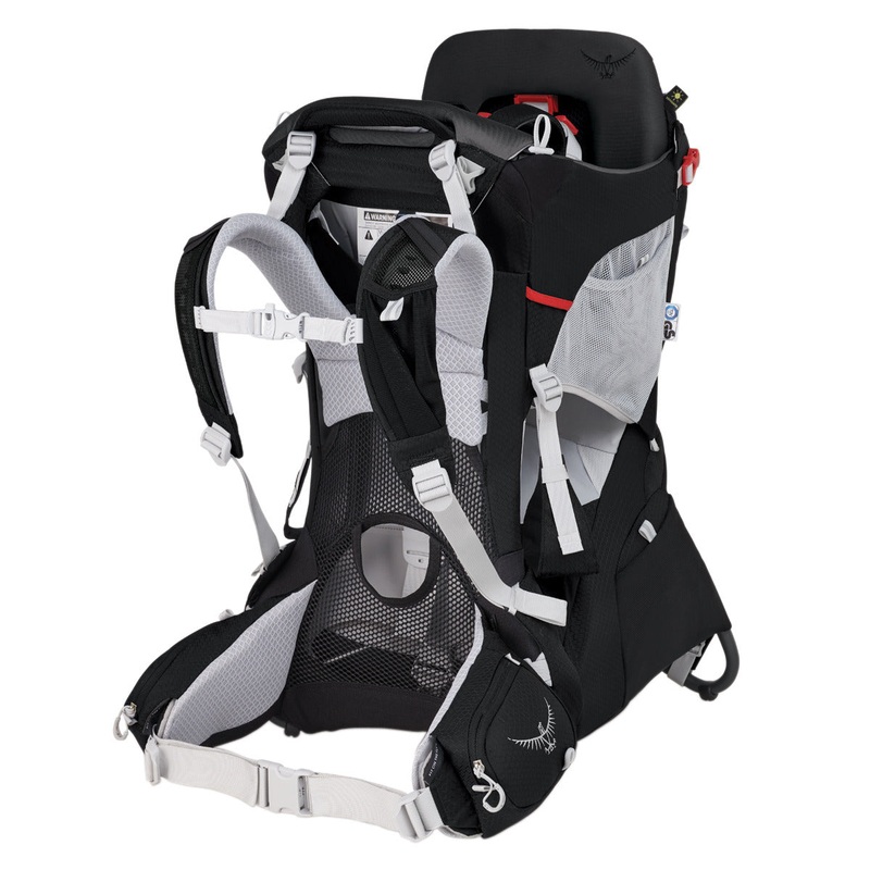 The Osprey Poco Plus child carrier is safe and comfortable. Its lightweight aluminum frame, padded ventilated shoulder straps and adjustable and breathable back panel provide enhanced comfort and custom fit. This child carrier is the perfect companion for all your family adventures on the trails. Whether its a big or a small adventure, the Poco child carrier nurtures discovery. Carrying a child on your back in a supportive, innately safe and comfortable carrier allows you to have a shared point of view while giving you the freedom and mobility to adventure together. Furthermore, its built-in sunshade that protects your child from the sun’s rays, will give you peace of mind while adventuring together. Furthermore, the Poco Plus features a large under-seat compartment, very useful to store your essentials and large enough to stash a diaper changing kit.