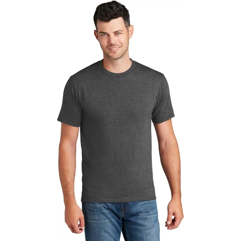50/50 cotton/poly (Dark Heather Grey, Heather Navy)