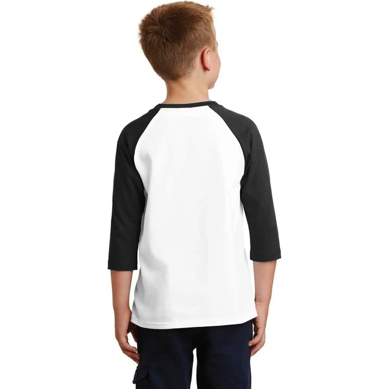 Be the first to review “Port & Company PC55YRS Youth Core Blend 3/4-Sleeve Raglan Tee – White Jet Black”