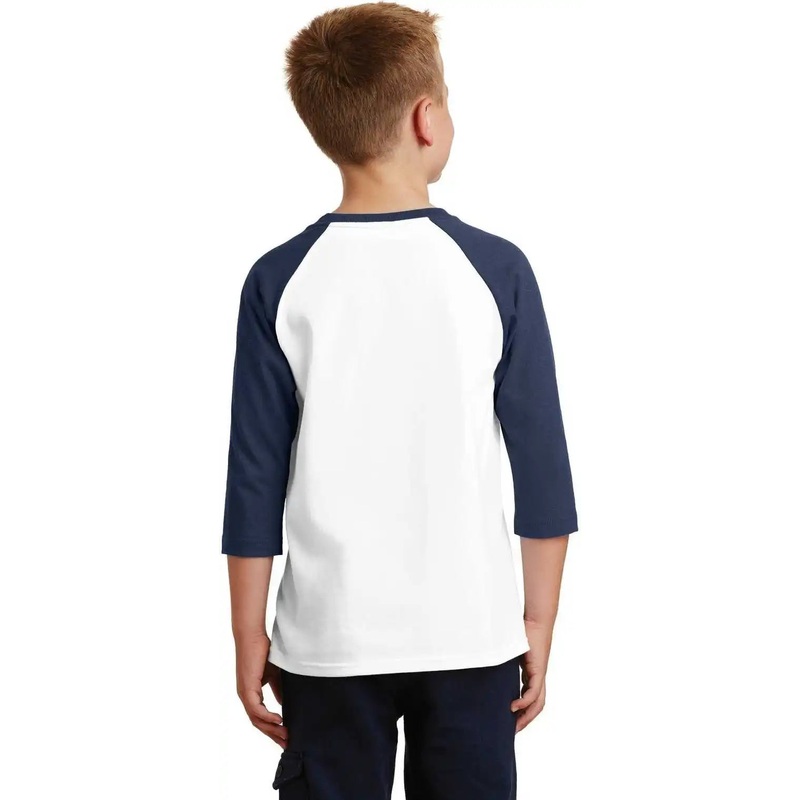 Be the first to review “Port & Company PC55YRS Youth Core Blend 3/4-Sleeve Raglan Tee – White Navy”