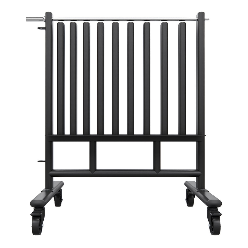 Keep your Black Neoprene or Vinyl Dumbbells off the floor and out of the way. Removable steel bar slides into place to lock dumbbells into rack when not in use (lock not included). Casters allow you to move the entire rack full of dumbbells out of the way when they are not in use. Assembly required. Dumbbells sold separately.