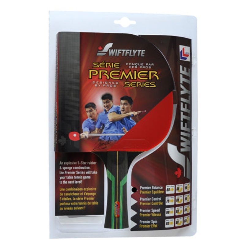 An explosive 5-Star rubber & sponge combination, the Premier Series will take your table tennis game to the next level! Four styles available; Balance – Well rounded performance, Control – For those seeking a defensive strategy, Speed – enhanced rebound approach, Spin – added grip for spin.