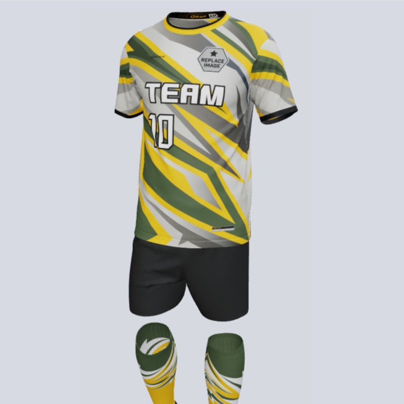 “Experience electrifying style and unbeatable performance with our Custom ‘Lightning’ soccer uniform set. This lightning-fast ensemble is fully customizable, allowing you to create a design that perfectly captures your team’s unique identity. Ignite team spirit and charge up the field with personalized jerseys and socks that showcase your individuality. Our advanced moisture-wicking technology keeps you cool and dry, ensuring optimal comfort during intense matches. Trust in the power of your decision to invest in this incredible custom soccer uniform that will leave your opponents in awe. Don’t just play the game, make a thunderous statement with the ‘Lightning’ soccer uniform set. Unleash the energy, dominate the field, and let your team’s light shine bright!”