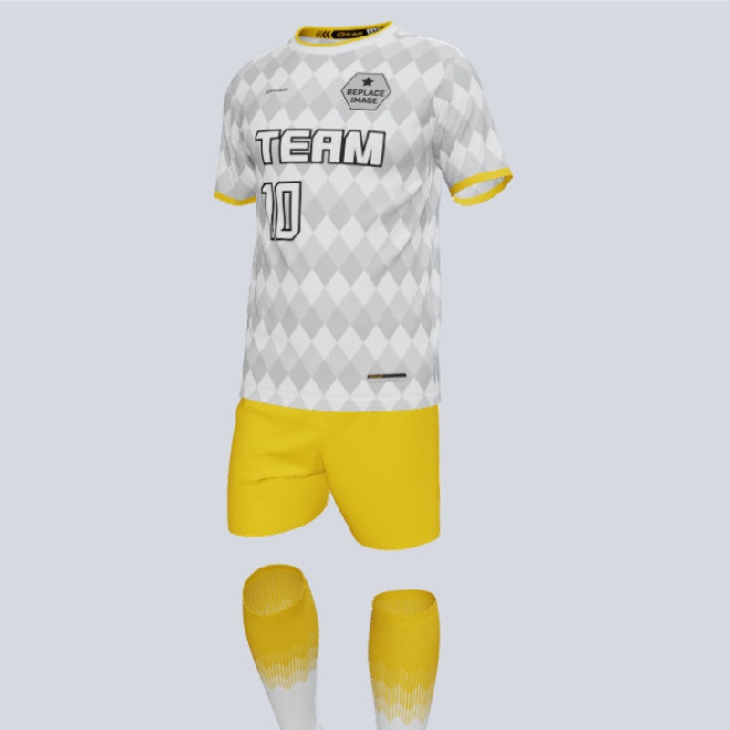 “Get ready to tackle the competition with our Custom ‘Rough’ soccer uniform set! This rugged ensemble is fully customizable, allowing you to create a design that perfectly matches your team’s fearless spirit. With jerseys and socks that can be personalized, you can proudly showcase your team’s unique style and elevate your team pride to new heights. Don’t let the game rough you up our advanced moisture-wicking technology keeps you cool and dry, ensuring maximum comfort on the field. Trust in your decision to invest in this incredible custom soccer uniform set that will have your opponents trembling. Embrace the rough and tumble, dominate the game, and show the world what your team is made of!”