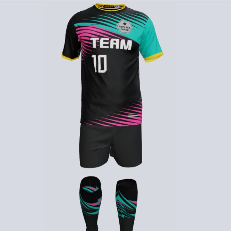 “Unleash your team’s cutting-edge style with our Custom ‘Slash’ soccer uniform set! This isn’t just any uniform it’s a design statement that can be fully customized to reflect your team’s unique personality. Trust us, investing in this remarkable custom soccer uniform will leave a lasting impression. Create a design that slashes through the competition and elevates your team’s image to new heights. With customizable jerseys and socks, you’ll have the power to showcase your team pride like never before. And with advanced moisture-wicking technology, you can trust that this soccer uniform will keep you cool and dry, ensuring optimal performance on the field. Don’t settle for ordinary, go for the ‘Slash’ and make your mark in style!”