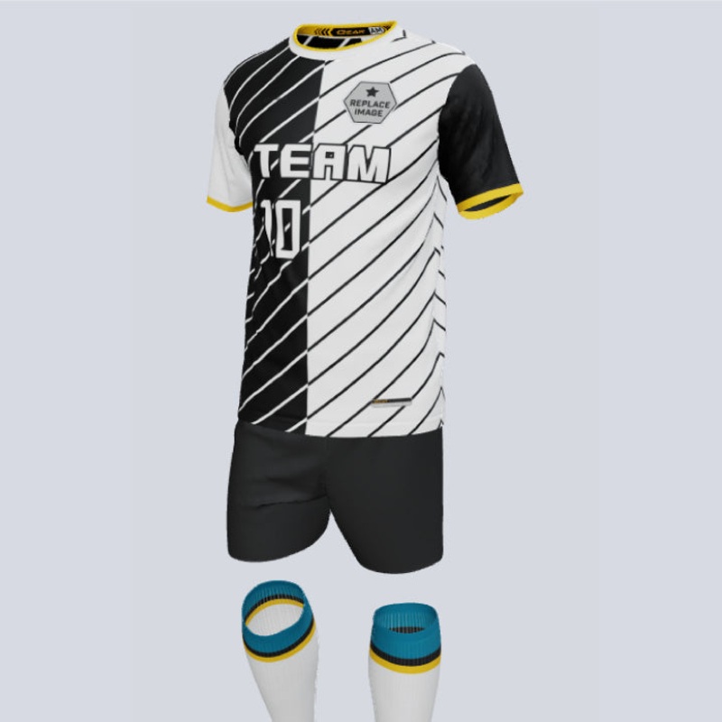 “Experience the power of unity on the field with our Custom ‘Split’ soccer uniform set! This innovative ensemble is fully customizable, allowing you to create a design that splits from the ordinary and showcases your team’s unique style. Amplify your team pride and ignite a sense of togetherness like never before. With customizable jerseys and socks, you can make a statement that sets your team apart from the competition. And with our advanced moisture-wicking technology, you can trust that your performance will stay cool, dry, and unstoppable. Invest in this remarkable soccer uniform and witness the incredible impact it brings to your team’s spirit and performance. Get ready to conquer the field with the ‘Split’ soccer uniform set!”