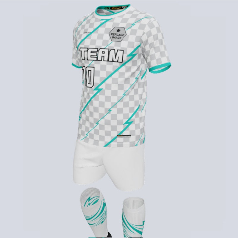 “Unleash electrifying style on the field with our Custom ‘Zap’ soccer uniform set! This dynamic ensemble is fully customizable, empowering you to create a design that sparks excitement and showcases your team’s unique identity. Ignite a surge of team pride and elevate your game to new heights. With customizable jerseys and socks, you can make a statement that leaves opponents in awe. And with our advanced moisture-wicking technology, you can trust that your performance will stay charged, dry, and unstoppable. Invest in this phenomenal soccer uniform and witness the electric impact it brings to your team’s spirit and performance. Get ready to shock the competition with the ‘Zap’ soccer uniform set!”