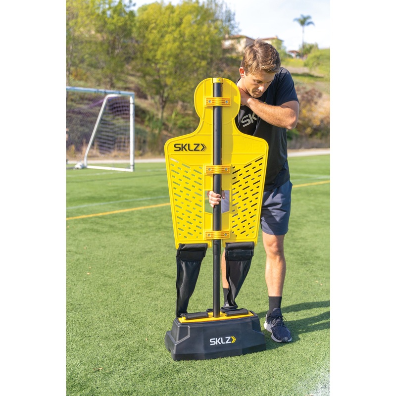 The Pro Training Defender Base weight is designed for using the SKLZ Pro Training Defender on turf and other artificial surfaces. Easily insert the Pro Training Defender inside the base to hold it upright and in place for training. The built-in pass-through channel can be used for holding down goals and keeping rebounders in place for a variety of sports. The attached wheels make for easy transportation from the car or equipment room, and to and across the field. The base holds up to 30 pounds of water and 40 pounds of sand for stability against wind, balls, and players. Multiple bases stack together for convenient storage and secure transportation.