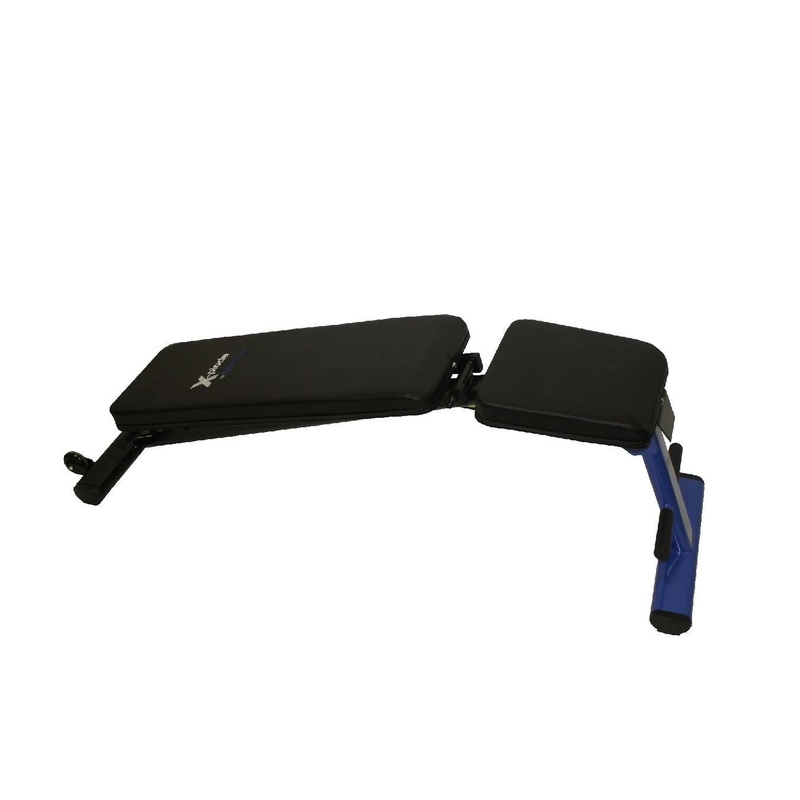 The folding bench features 8 different incline adjustments, including flat and decline. Its constructed with a heavy 14 gauge steel frame and the wide 12 upholstery gives you extra support with added comfort. A quick adjustment pin allows you to fold under the support legs and fold the bench to under 10 off of the ground. Perfect to slide under your bed or against the closet.