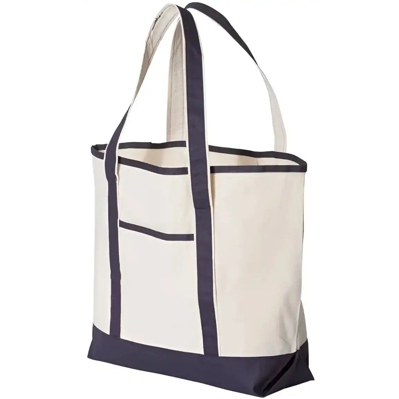 Q-Tees Q1500 34.6L Large Canvas Deluxe Tote – Natural Navy