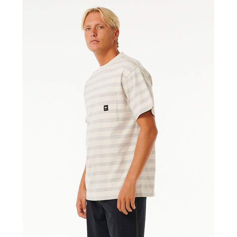 Stay on trend with the Quality Surf Product Stripe Tee, crafted with yarn-dyed stripes, a front pocket, woven badge, and a woven flag label for a stylish and practical surf look.