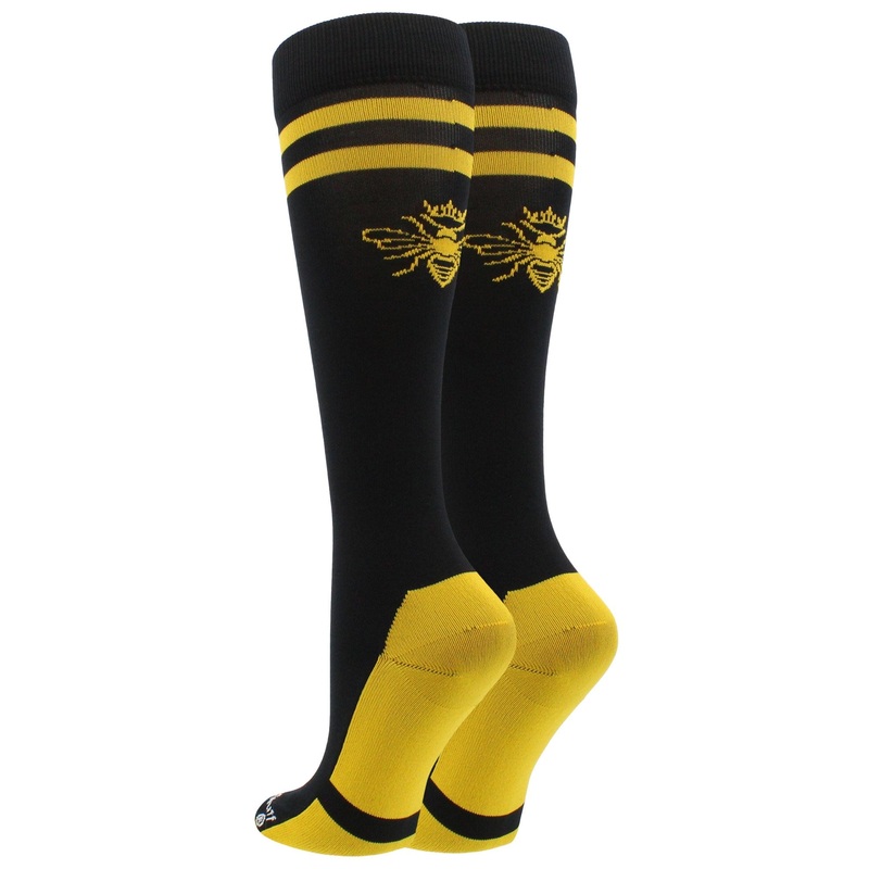 MadSportsStuff Queen Bees Softball socks and Soccer socks. High performance long sports socks for softball or soccer. Available in girls and womens sizes. Perfect for team socks or team gifts.