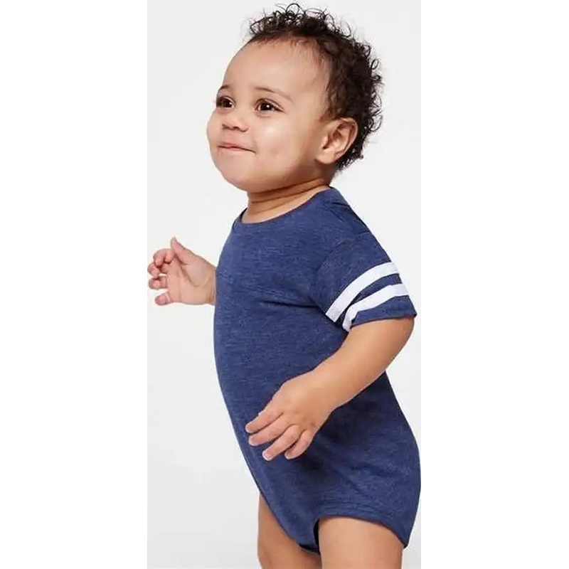 Rabbit Skins 4437 Infant Football Fine Jersey Bodysuit – Vintage True Navy Blended White
