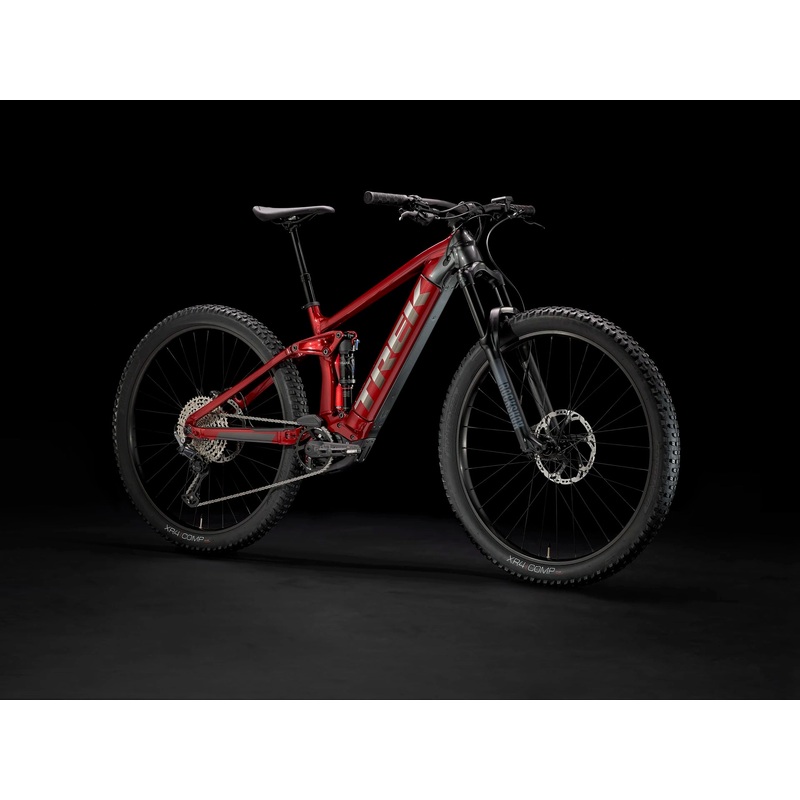 A burly alloy frame with 150mm of rear travel that fully encases a 500Wh battery, an e-MTB optimized 160mm RockShox 35 Gold RL fork, a powerful new Bosch Performance Line CX 250W motor that assists up to 20 mph, and a Purion controller. Plus, a 1×12 drivetrain with a wide gear range so you can always find the ideal cadence for the motor, a dropper post, powerful 4-piston brakes for more downhill confidence, and 29er Bontrager wheels with nimble yet grippy 2.6″ tires.