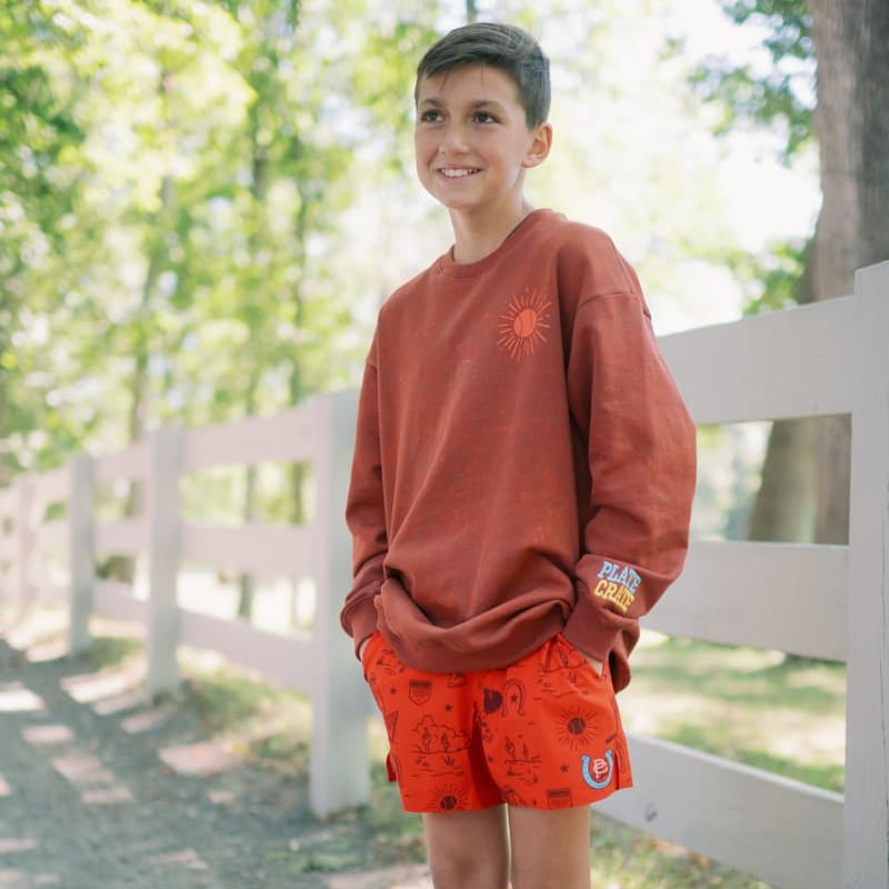 Rugged, bold, and built for the frontierthe Wild West Rawhide Crewneck delivers timeless Western style with modern comfort. Featuring a chest sunburst baseball graphic and a striking back print that reads Get On Your Horse!, this crewneck is the perfect blend of grit and flair.