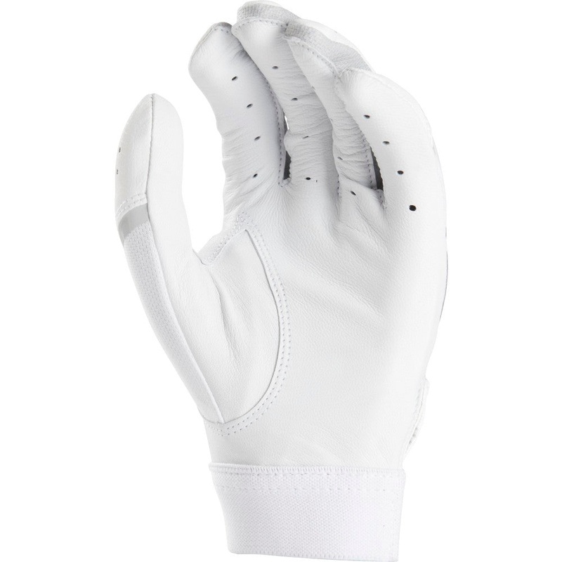 These Storm batting gloves feature a durable goat skin leather palm with a flexfit eyelet that provides increased knuckle flexibility. The double knit lycra finger gussets create an enhanced fit.