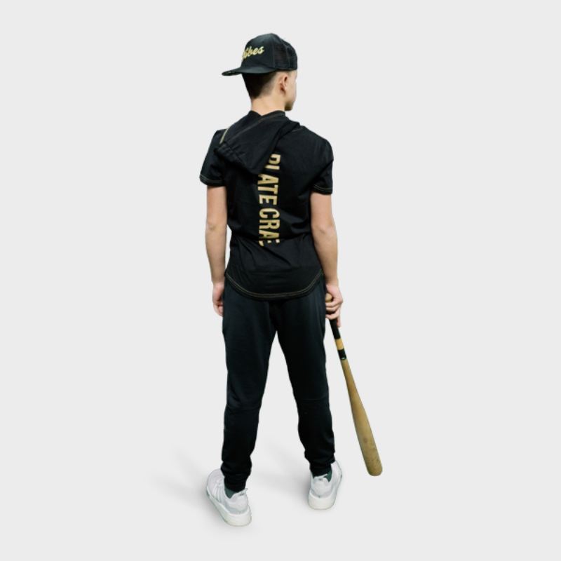 There’s always room in your wardrobe for another short sleeve hoodie. This black short sleeve hoodie features the Plate Crate logo on the front and the words Plate Crate down the spine.