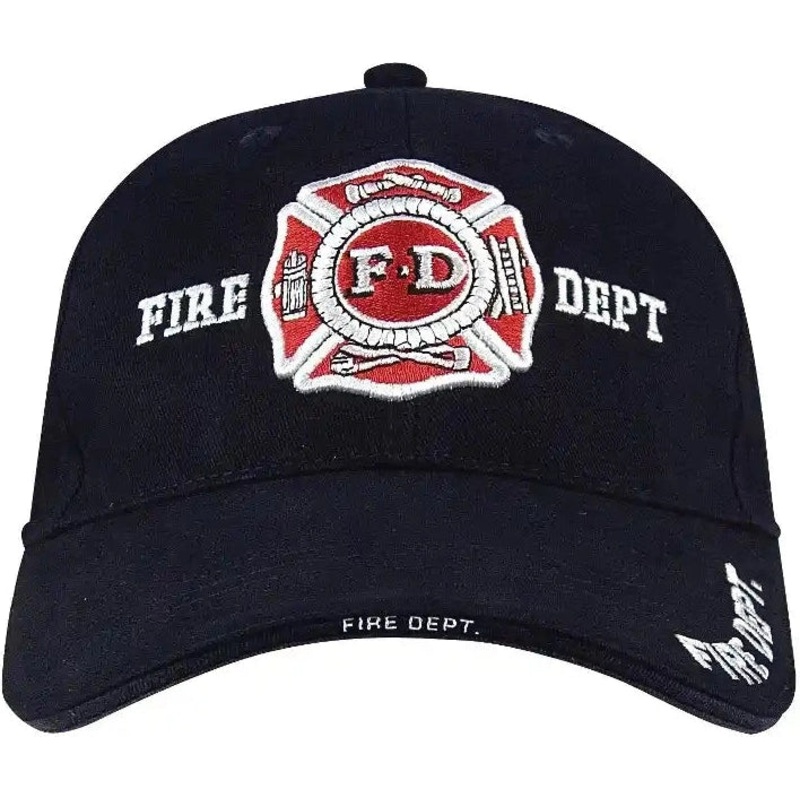 Proudly wear your support for our brave fire fighters with Rothcos Deluxe Fire Department Low Profile Cap. The front panel of this fire department cap displays a raised embroidered FIRE DEPT with a 3-D classic fire department emblem stitched in the center with impeccable detailing. The words FIRE DEPT. are sewn in stark white thread twice on the brim of this fire fighter hat, while the adjustable hook and loop closure on the back of this fire department insignia hat also features the text FIRE DEPT. FIRE DEPT. also appears centered on the front of the brim. Our firefighter logo cap constructed with 100% brushed cotton twill for unparalleled comfort and durability.