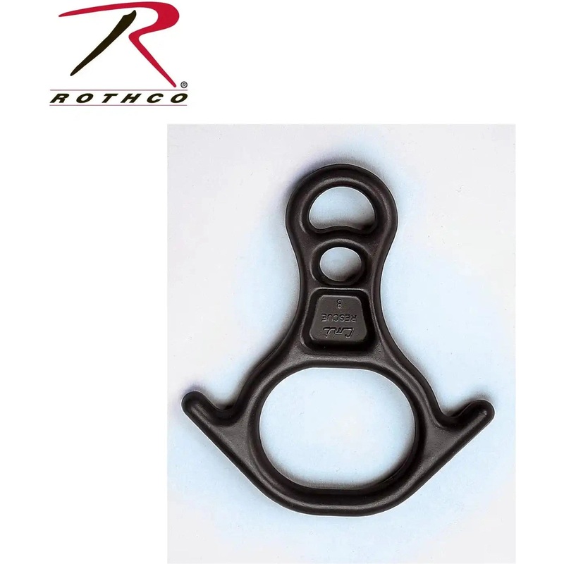 Big enough to handle the largest ropes–two of them. Extended horns on the upper ring make tying off a snap by preventing the rope from sliding up and locking off. Dual holes on the tie-in end allow the 8-Ring to remain attached to the harness while threading the rope, preventing loss of the device in extreme conditions. The industry standard for rescue grade descenders.