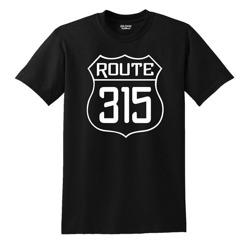 “Route 315” T-shirts in black, white, gray, red, and blue.