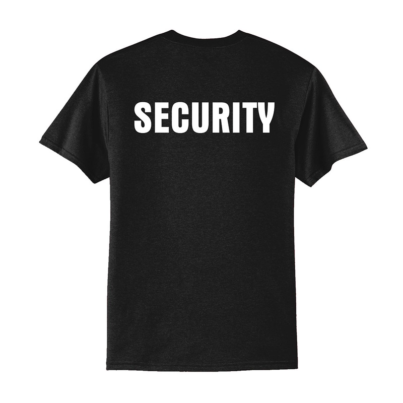 SECURITY 50/50 Blend Black T-shirt with “Security” logo on the left chest and back.