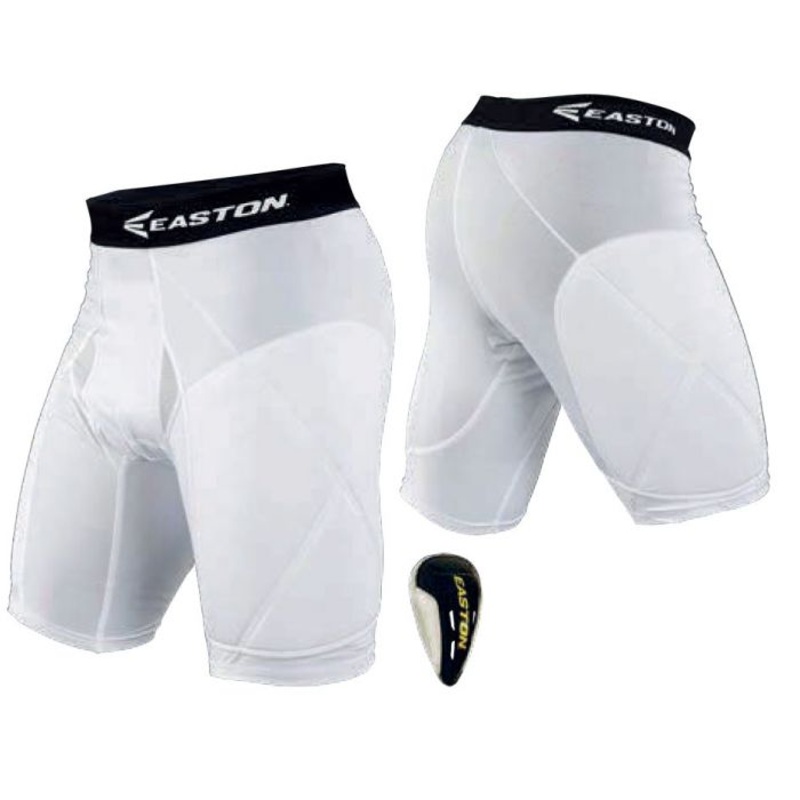 EASTON engineered cup holder and sliding short all in one CUP INCLUDED Targeted foam padding for added protection Mens 9″ inseam, Youth 7″ inseam 90% polyester / 10% spandex