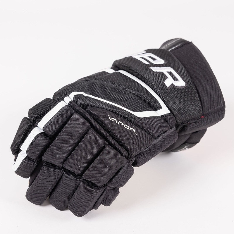 The gloves are equipped with dual-density foam and PE shield inserts in the fingers, in addition to a three-piece index finger design. The three-piece design helps enhance flexibility in that finger, allowing for more overall freedom when stickhandling.