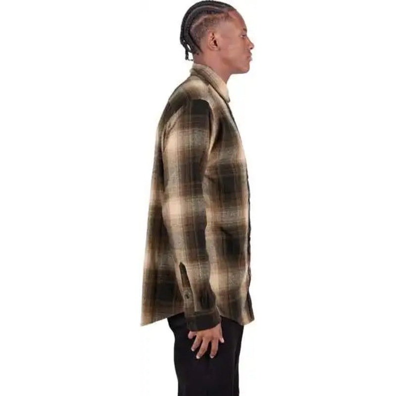 Shaka Wear SHHFS Men’s Plaid Flannel Overshirt – Brown/ Black