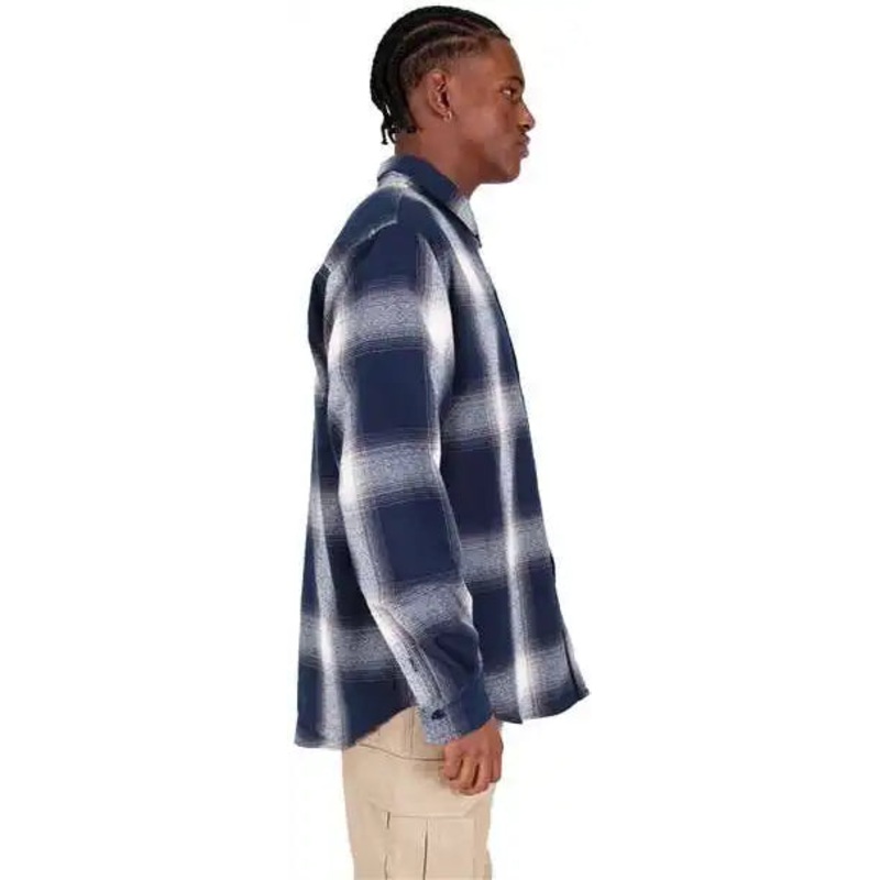 Shaka Wear SHHFS Men’s Plaid Flannel Overshirt – Cream/ Navy