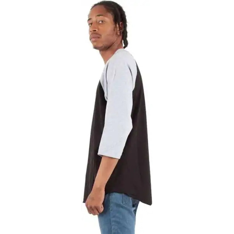 Shaka Wear SHRAG Unisex Three-Quarter Sleeve Raglan T-Shirt – Black/ Heather Gray