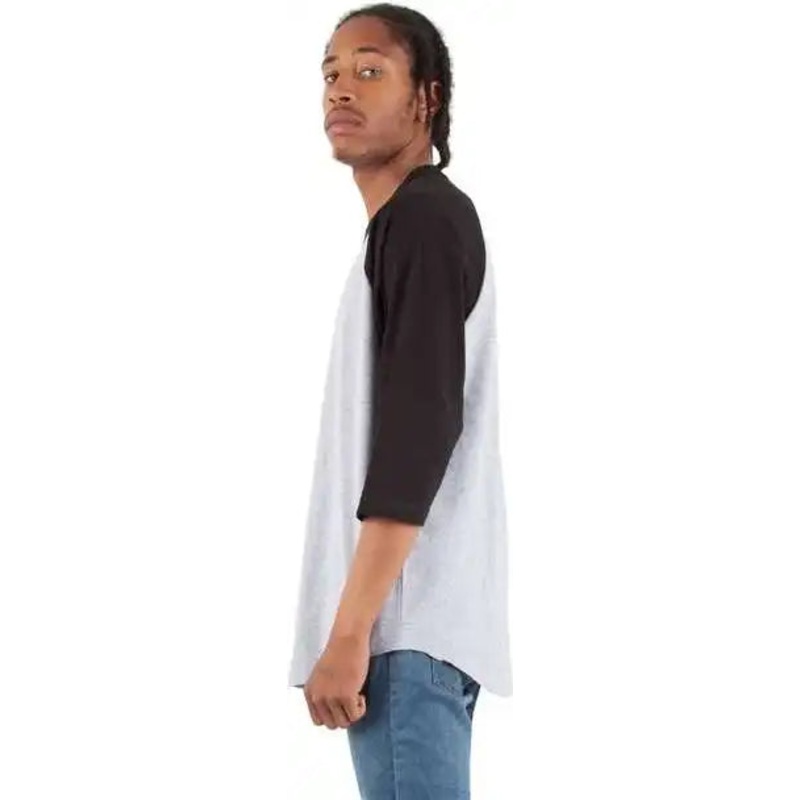 Shaka Wear SHRAG Unisex Three-Quarter Sleeve Raglan T-Shirt – Heather Gray/ Black