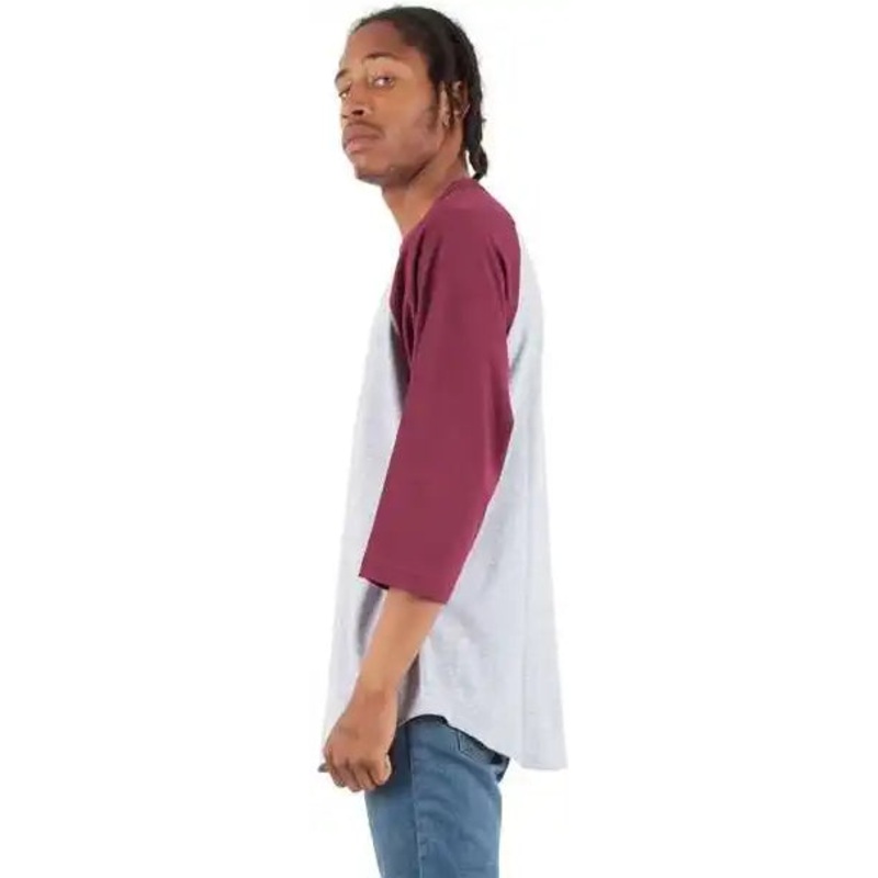 Shaka Wear SHRAG Unisex Three-Quarter Sleeve Raglan T-Shirt – Heather Gray/ Burgundy