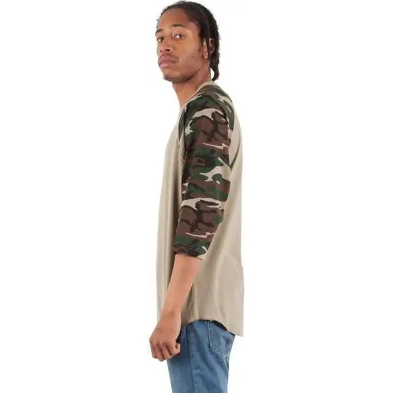 Shaka Wear SHRAGCM Unisex Three-Quarter Sleeve Camo Raglan T-Shirt – Olive/ Camo Green