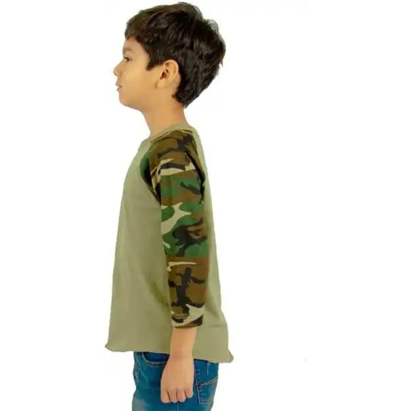 Shaka Wear SHRAGCY Youth Three-Quarter Sleeve Camo Raglan T-Shirt – Olive/ Camo Green