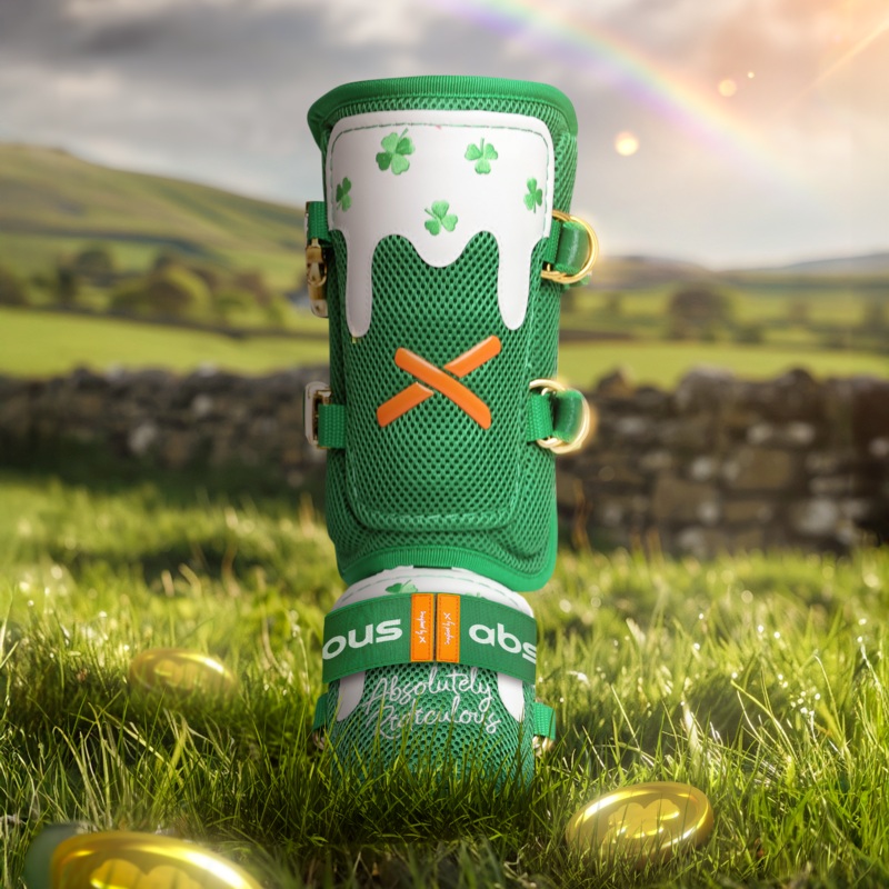 Featuring a duel layered sponge absorption mesh lining, reinforced vegan leather ice cream drip, stitched shamrocks, and an enhanced elastic strap.