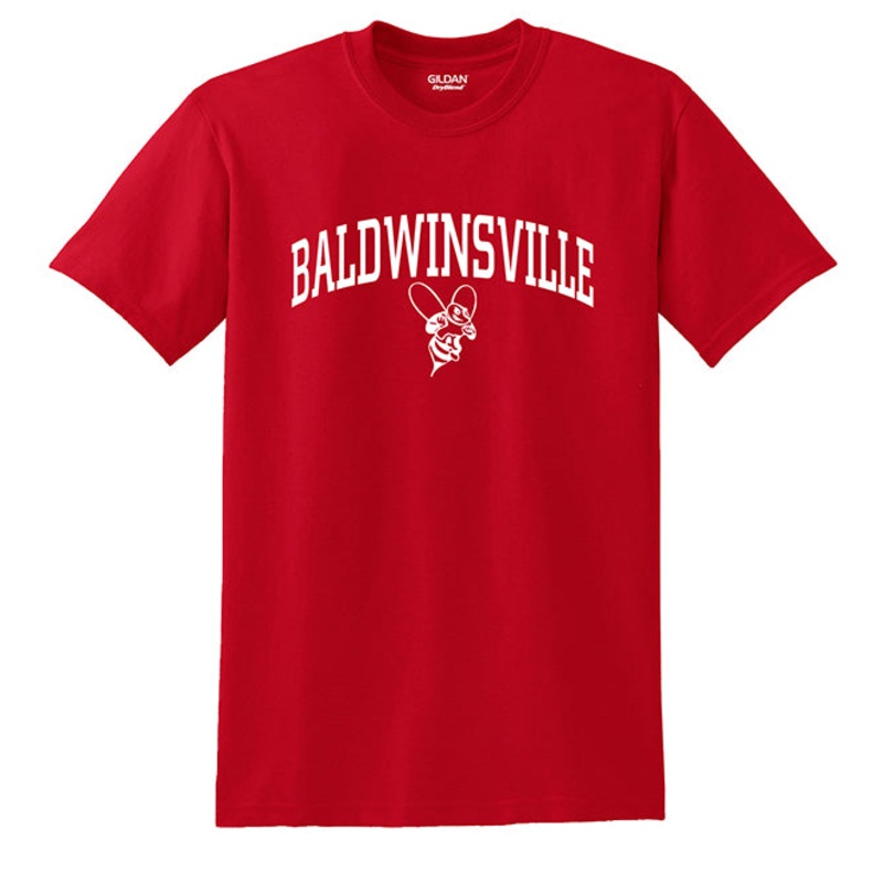 Sport the “Baldwinsville” logo on red, white, or black tees!