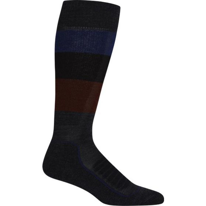 The Ski+ Medium Over the Calf Wide Stripe socks are durable, stretchy and highly breathable socks for technical performance on the snow. The fully cushioned design features a blend of merino wool, nylon and Lycra thats anatomically sculpted with key support zones in the ankle, Achilles, and instep. The breathe zone increases ventilation, and the seamless toe reduces bulk and prevents blisters. Inspired by nature, icebreaker harnesses the performance qualities of natural fibers to offer an alternative to clothing based on petrochemical synthetics. Merino is an annually renewable fiber that naturally resists odors, keeps you cool when its hot and warm when its not, and lets your skin breathe for comfort all day, every day.