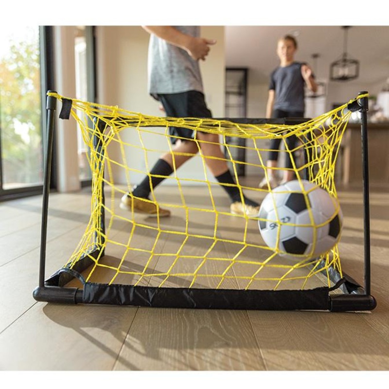 The Pro Mini Soccer goal and included soft foam soccer ball provide hours of fun for all ages. These mini nets are perfect for indoor playing in almost any room of the house. The authentic shaped mini soccer goal is built with a durable construction and can hold up against hours of play. The lightweight foam soccer ball is soft and safe to play wherever the net is set up in the house. Designed with an easy to assemble frame for a quick setup or breakdown. Both nets will fit in most spaces built or broken down for convenient storage.