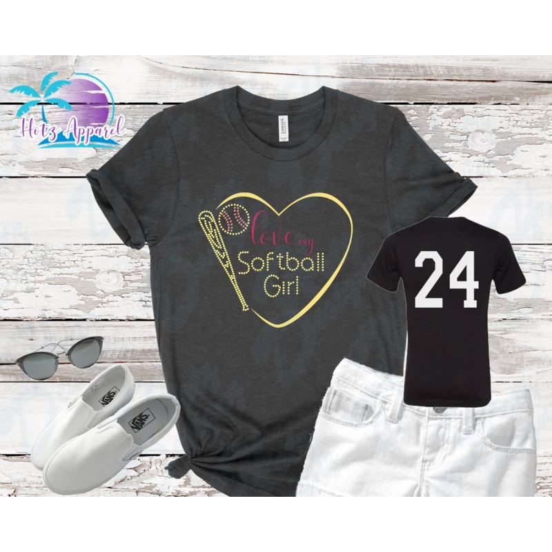 Super soft, lightweight and comfy Bella+Canvas tee is embellished with a rhinestone & glitter design sure to sparkle in the sun. A must have for a day at the ballpark! Customization available. Add player number in glitter on shirt back.In the notes section of the cart indicate the player number.