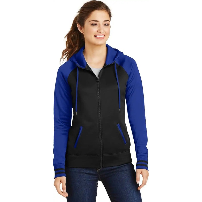 With colorblock raglan sleeves, this varsity-inspired jacket wicks moisture and fights static.