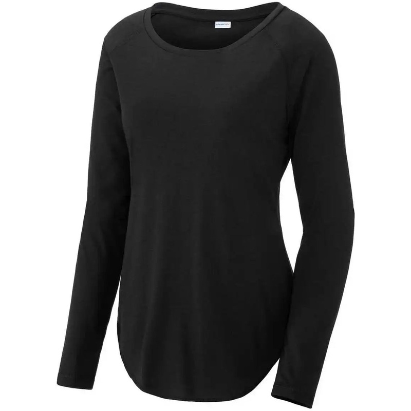 Sport-Tek LST400LS Ladies Posicharge Long Sleeve Tri-Blend Wicking Scoop Neck Raglan Tee – Black Triad Solid