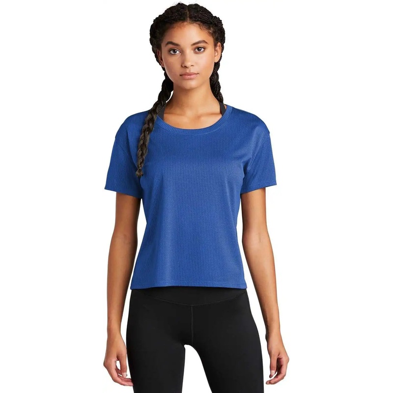 With an on-trend cropped fit and all-over open-mesh fabric, this moisture-wicking draft crop tee has PosiCharge technology to lock in color.