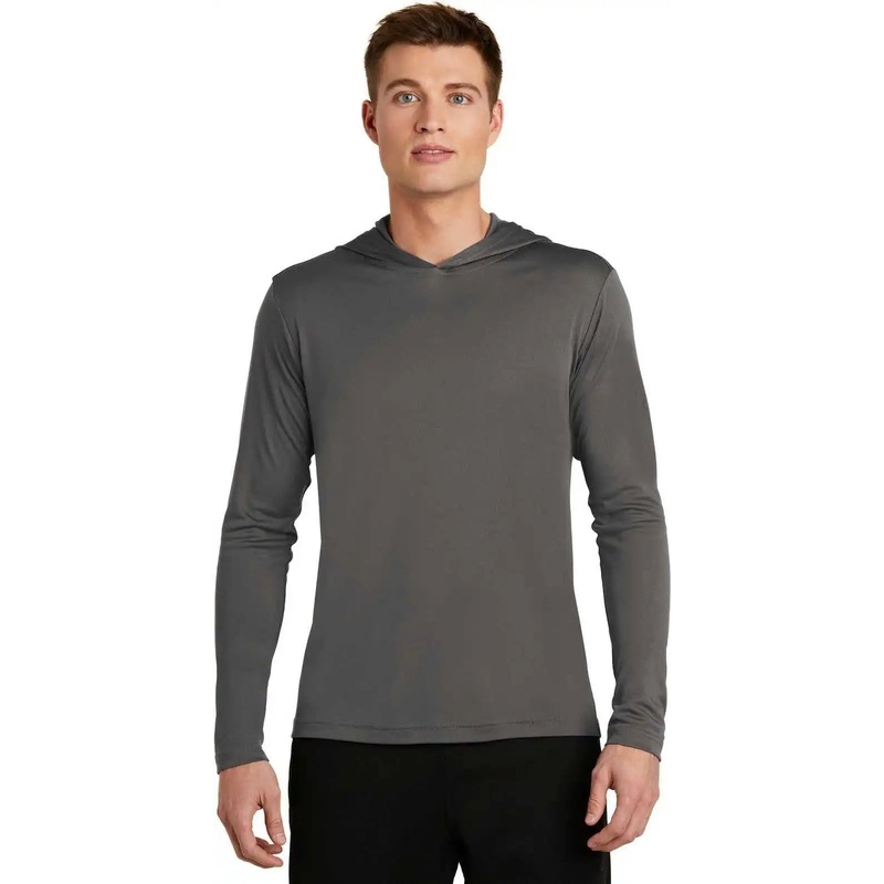 This lightweight hooded pullover locks in color and wicks moisture. It s versatile enough for year-round wear.