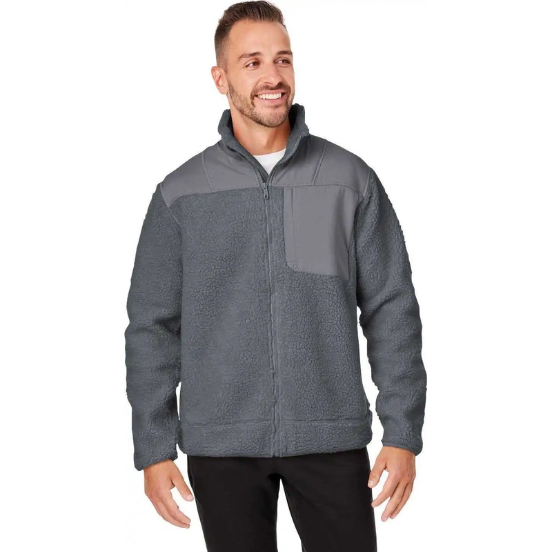 Bonded Sherpa: 100% polyester, 300 grams; Stretch Nylon: 82% nylon, 18% elastane;Full-zip front closure; Debossed Spyder neck tape internal locker loop; Internal draft flap; Vertical-zippered chest pocket with stylized Spyder grommet ; Inseam pockets with rubber Spyder zip closure; Stylized front and back yoke seams; Elastic cuff and hem binding; High-definition rubberized Spyder wordmark ; Raised silicone Spyder Bug patch;