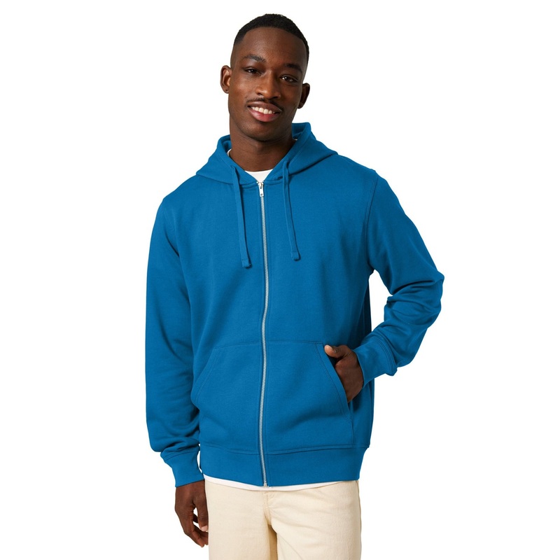 - A zipped hoodie that puts your brand in the spotlight. This midweight style is both sustainable and versatile, ideal for year-round layering.
