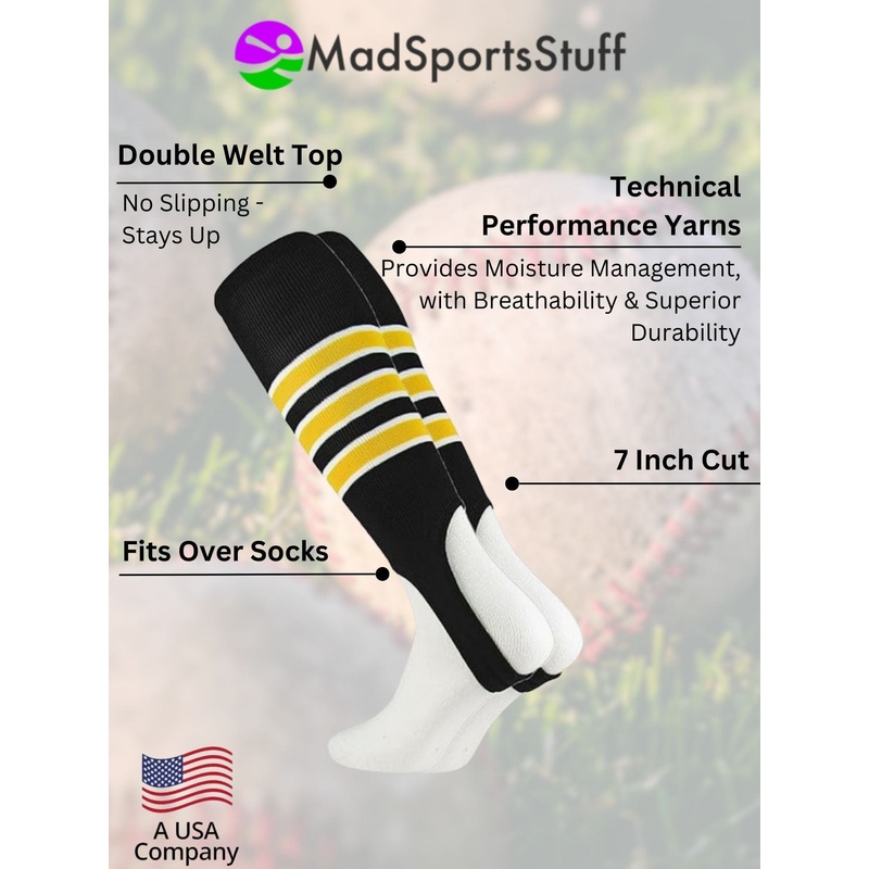 - ADDITIONAL DETAILS: Standard baseball stirrup profile, fits over athletic socks (socks not included). ***NOTE- Please be aware any products produced with stripes (Socks or Stirrups) WILL have an overlap/stairstep stitching area on every stripe. This is inherent to the knitting process and is unavoidable. Please note this is NOT a defect in the product. These baseball stirrups are the same baseball stirrups worn on the field by many elite players and the overlap is rarely noticed.***