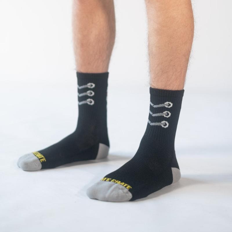Add a bold touch to your game-day gear with Plate Crate’s Sugar Skull Socks. The Sugar Skull Socks feature the custom Plate Crate Dia de los Muertos inspired baseball sugar skull on the front and laces on the back.