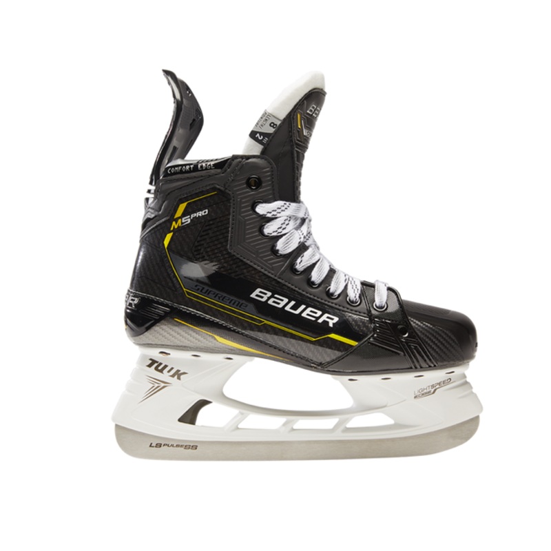 Get incredible power performance at unprecedented value. Built for elite powerful skaters, the M5 Pro delivers enhanced features in the boot construction and tendon guard bringing elite level technology to each and every stride.The 3D Lasted Carbon Curv Composite boot is fully thermoformable, giving you that game-ready feel with exceptional comfort. The boot is also stiff and responsive in the lower portion for the ultimate energy transfer on each stride. Dont forget to get the best steel for your specific game with the Choose Your Steel option.